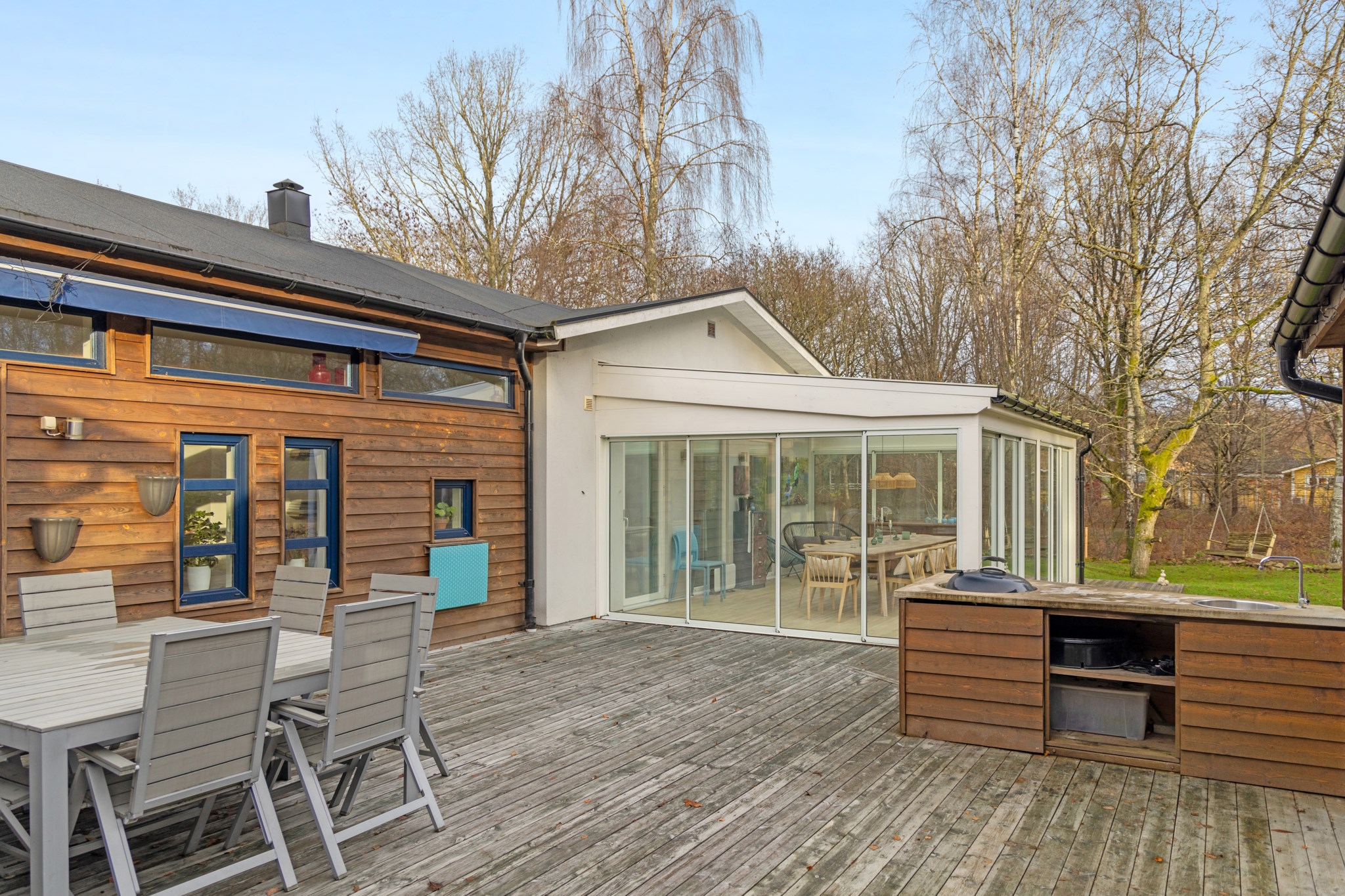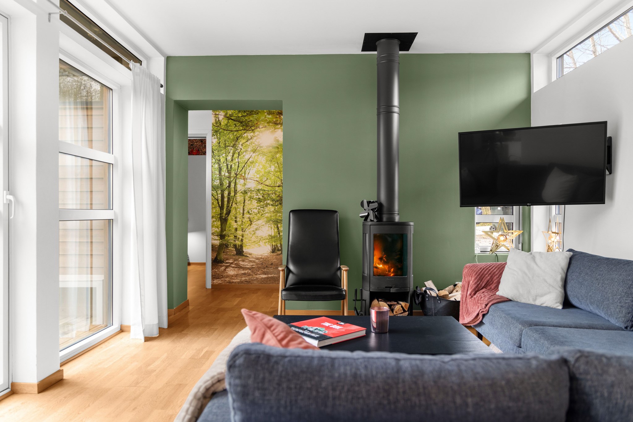 Trivsamt och naturskönt boende i lugna Lerbäckshult med skogen i tomtgräns. 144 kvm inklusive komplementhuset.