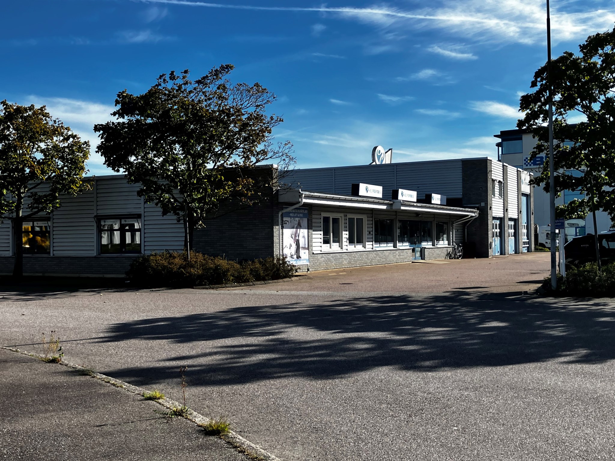 Mitt emot Biltema ligger denna fastighet med kontor, produktionshall och lagerytor som delvis är uthyrd och delvis kommer vara ledig för nya ägare.
