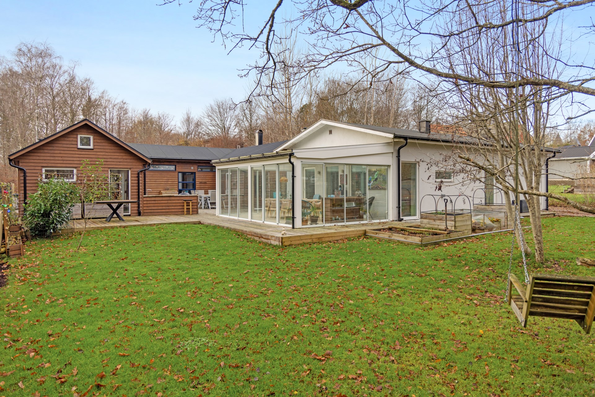 Trivsamt och naturskönt boende i lugna Lerbäckshult med skogen i tomtgräns. 144 kvm inklusive komplementhuset.
